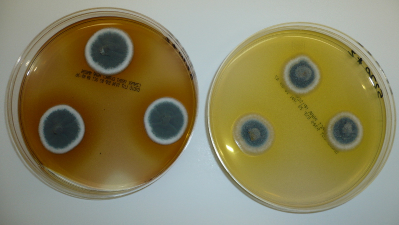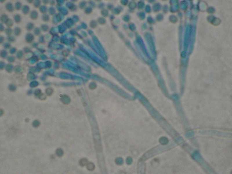 The term Green Mold does not refer to a specific type of mold. Green mold refers to a number of species of fungi with spores that take on a greenish color. Some of the common types of mold that may appear green are Cladosporium, Aspergillus and Penicillium. However, not all members Cladosporium, Aspergillus and Penicillium appear green. Some members of Penicillium and Aspergillus may appear blue and hence could be refered to as “blue mold”. Similarly some members of Cladosporium may appear black and hence the term “black mold”. Black mold is erroneously used to refer to the mold, Stachybotrys chartarum. Stachybotrys chartarum is very common in water damaged buildings. It has been associated with various health problems though some of them are highly debatable.